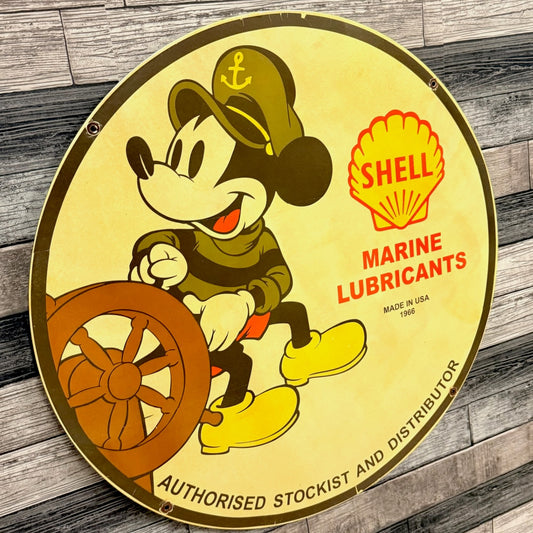 Marine fuel and lubricants were often marketed alongside automotive gasoline brands. Many coastal fuel docks displayed porcelain enamel branding similar to service stations.