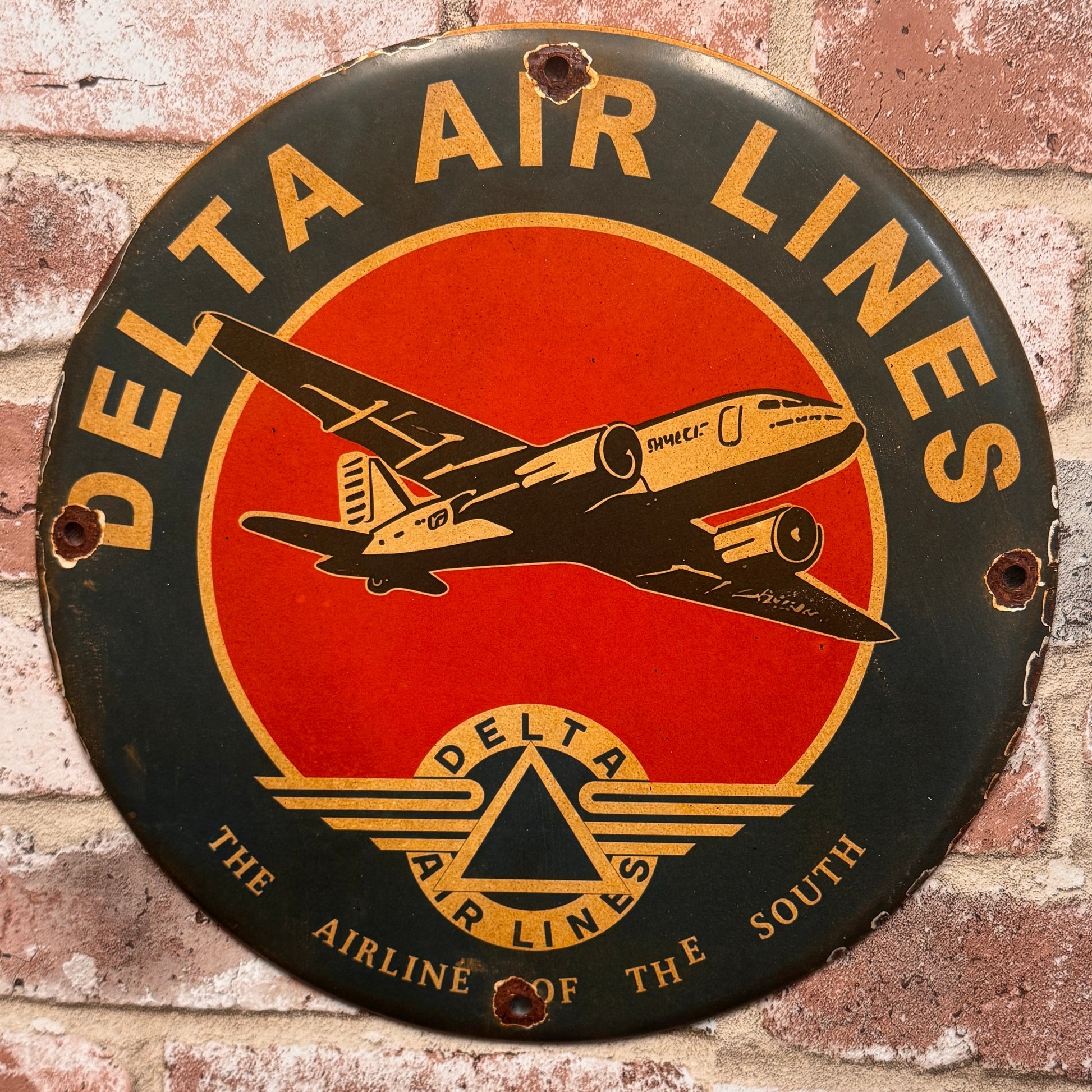 We do too. That’s why we don’t cut corners. This Delta Airline of the South 12” Porcelain Sign is built exactly like the originals—real kiln-fired porcelain enamel, layered onto ¼-inch heavy-gauge steel for a finish that lasts a lifetime.