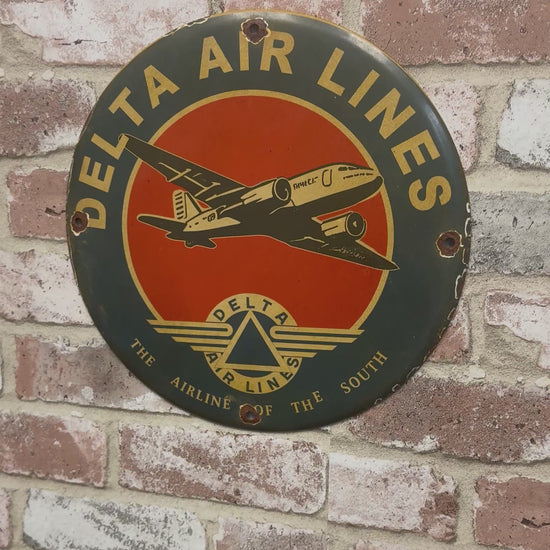 Before it became one of the largest airlines in the world, Delta Air Lines was known as "The Airline of the South," serving passengers with Southern hospitality, reliable service, and pioneering aviation advancements. Founded in 1924 as a crop-dusting company, Delta quickly grew into a major airline, connecting cities across the country with a commitment to safety and comfort. This vintage-style 12” porcelain sign celebrates Delta’s early years, featuring bold branding, classic typography, and nostalgic aviation-inspired design. A must-have for collectors of vintage airline memorabilia, aviation history, and classic travel advertising.