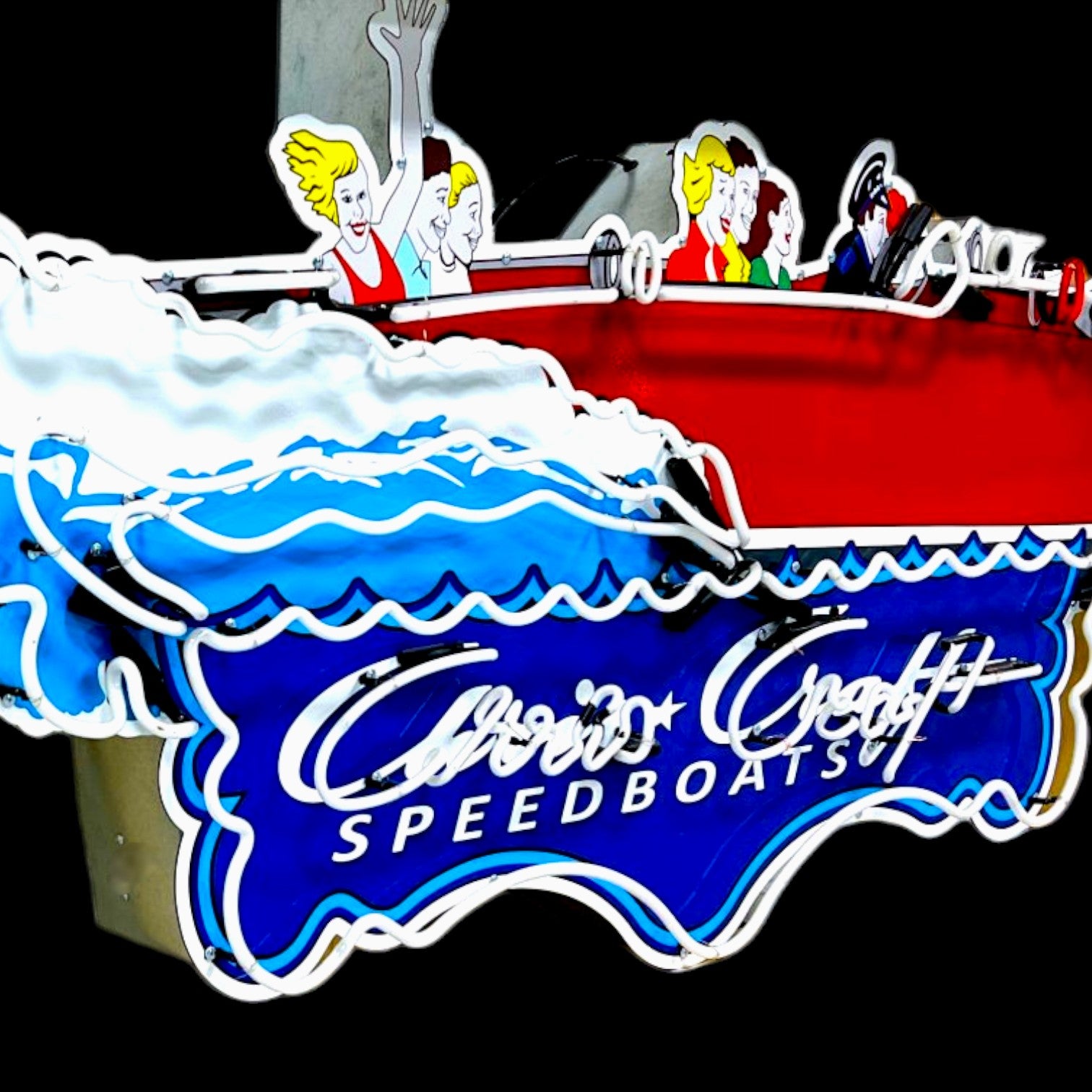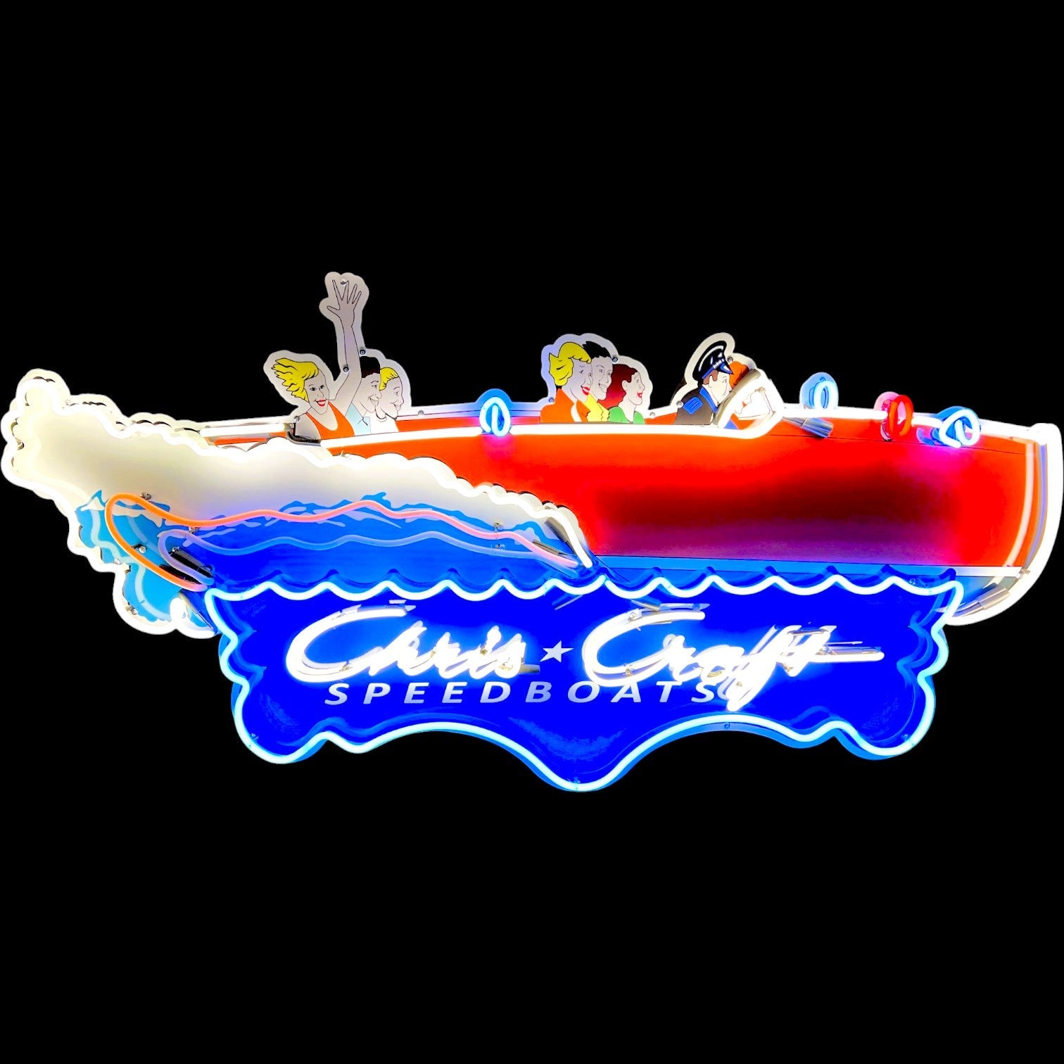 Reproduction Neon Porcelain Chris Craft Speedboats Die Cut Boat Vintage Advertising with Steel Can