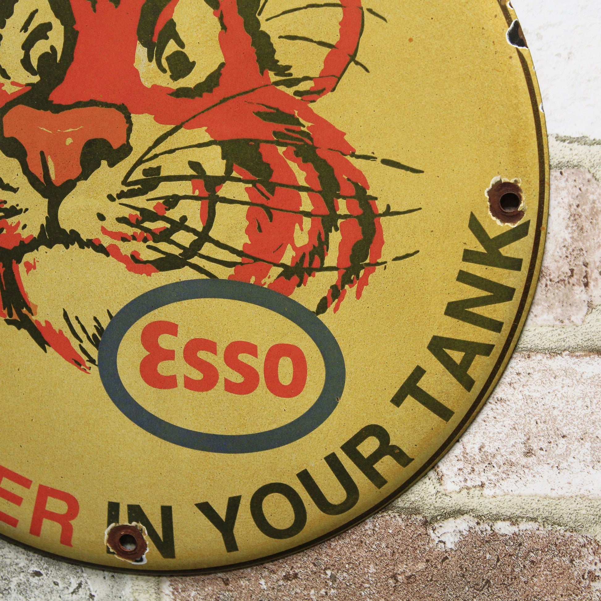 Few advertising mascots are as legendary as the Esso Tiger. First introduced in the 1950s, this fierce yet friendly feline became the face of Esso’s high-performance fuel, symbolizing power, reliability, and energy. This vintage-style porcelain sign brings back the golden age of classic gas stations and Esso’s unforgettable branding, featuring bold colors, striking typography, and the unmistakable tiger face that became an icon of the road. A must-have for collectors of vintage gas & oil memorabilia, classic service station signs, and Esso advertising history.