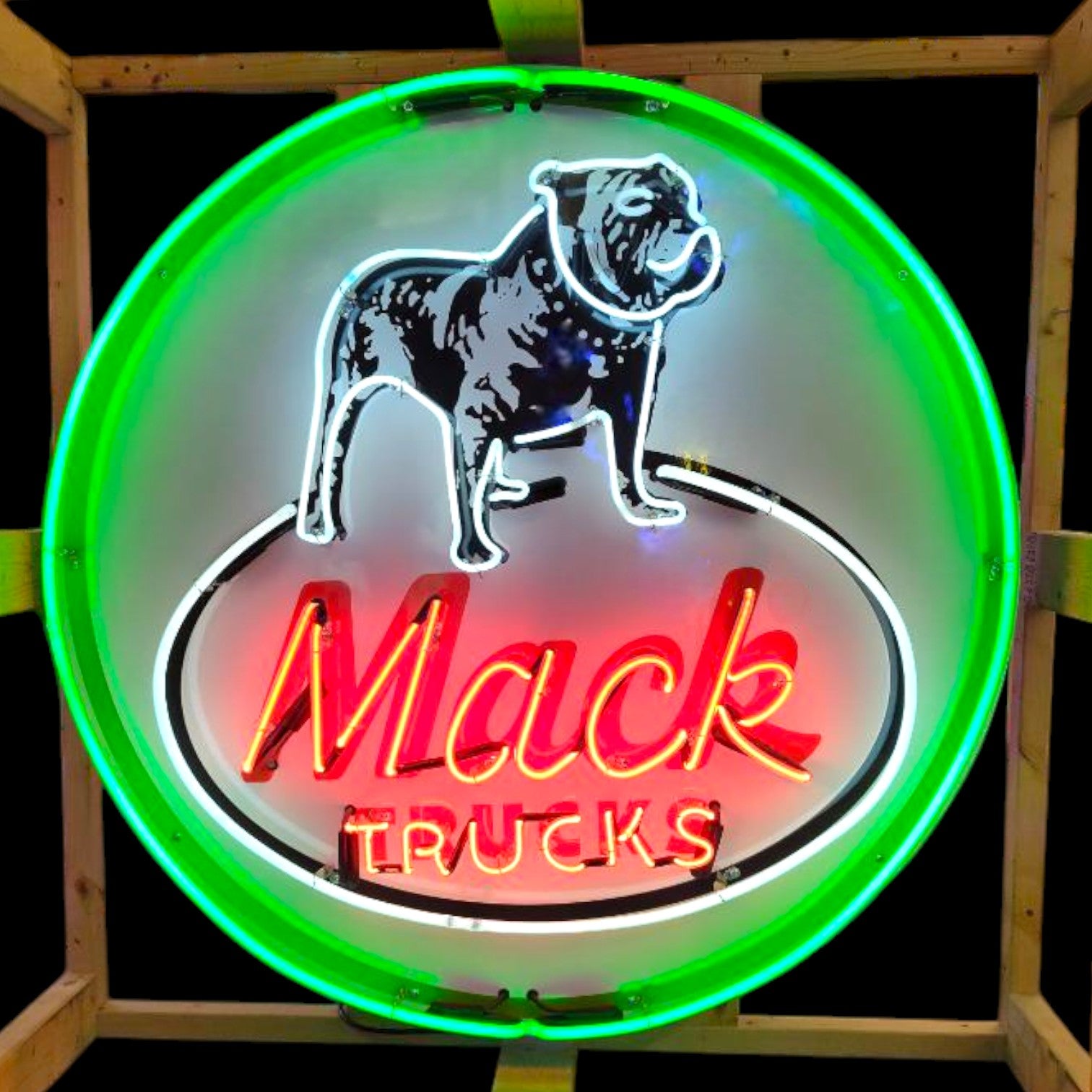 Mack Trucks Vintage Glass Neon Porcelain with Steel Can Reproduction