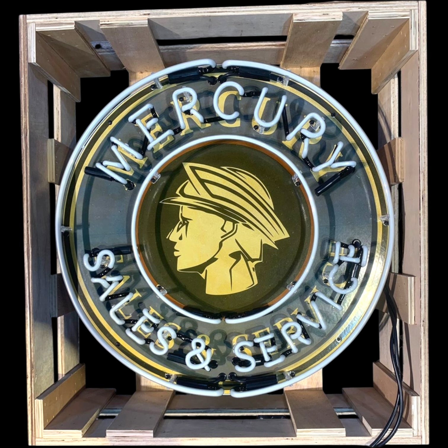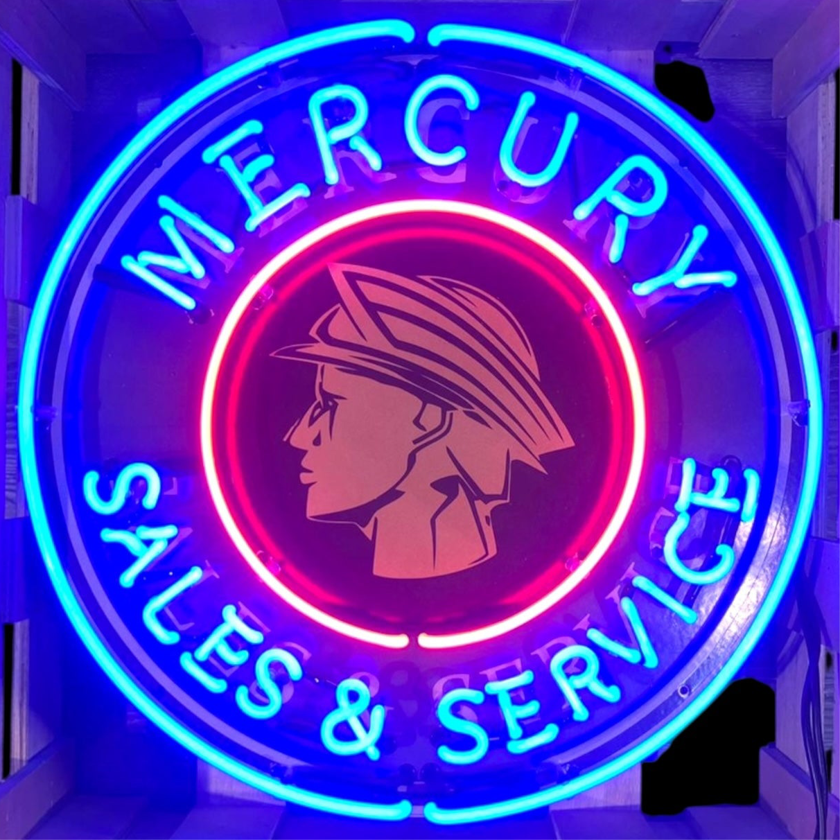 Mercury Sales & Service Single-Sided Neon Porcelain Box Sign
