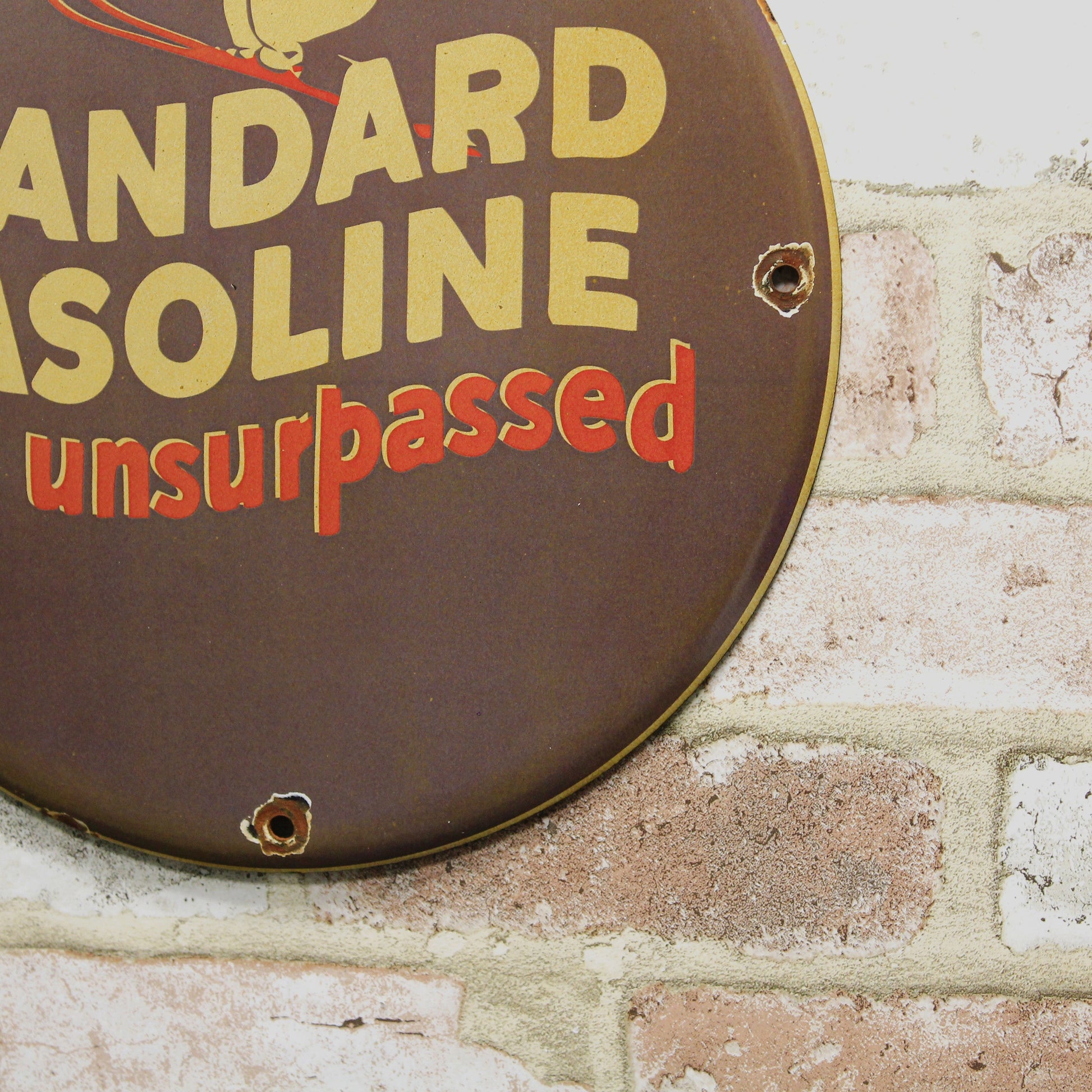 Back in the golden age of roadside service stations, Standard Gasoline was known for its premium fuel and motor oil that could withstand even the harshest conditions. And what better symbol of strength, endurance, and reliability than the majestic polar bear? This Standard Gasoline Polar Bear "Ski Unsurpassed" porcelain sign is a tribute to an era when service stations were more than just fuel stops—they were trusted brands that powered every journey. With bold vintage typography, striking artwork, and classic Standard branding, this sign is a must-have for collectors, auto enthusiasts, and lovers of old-school advertising.