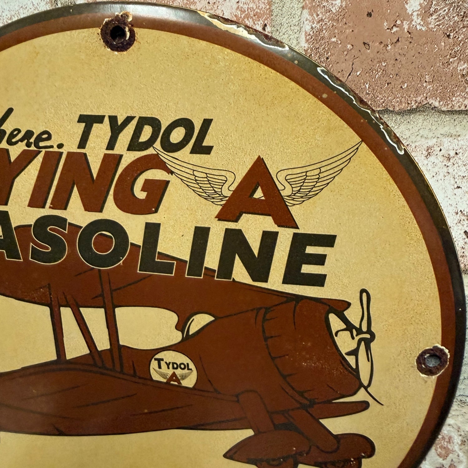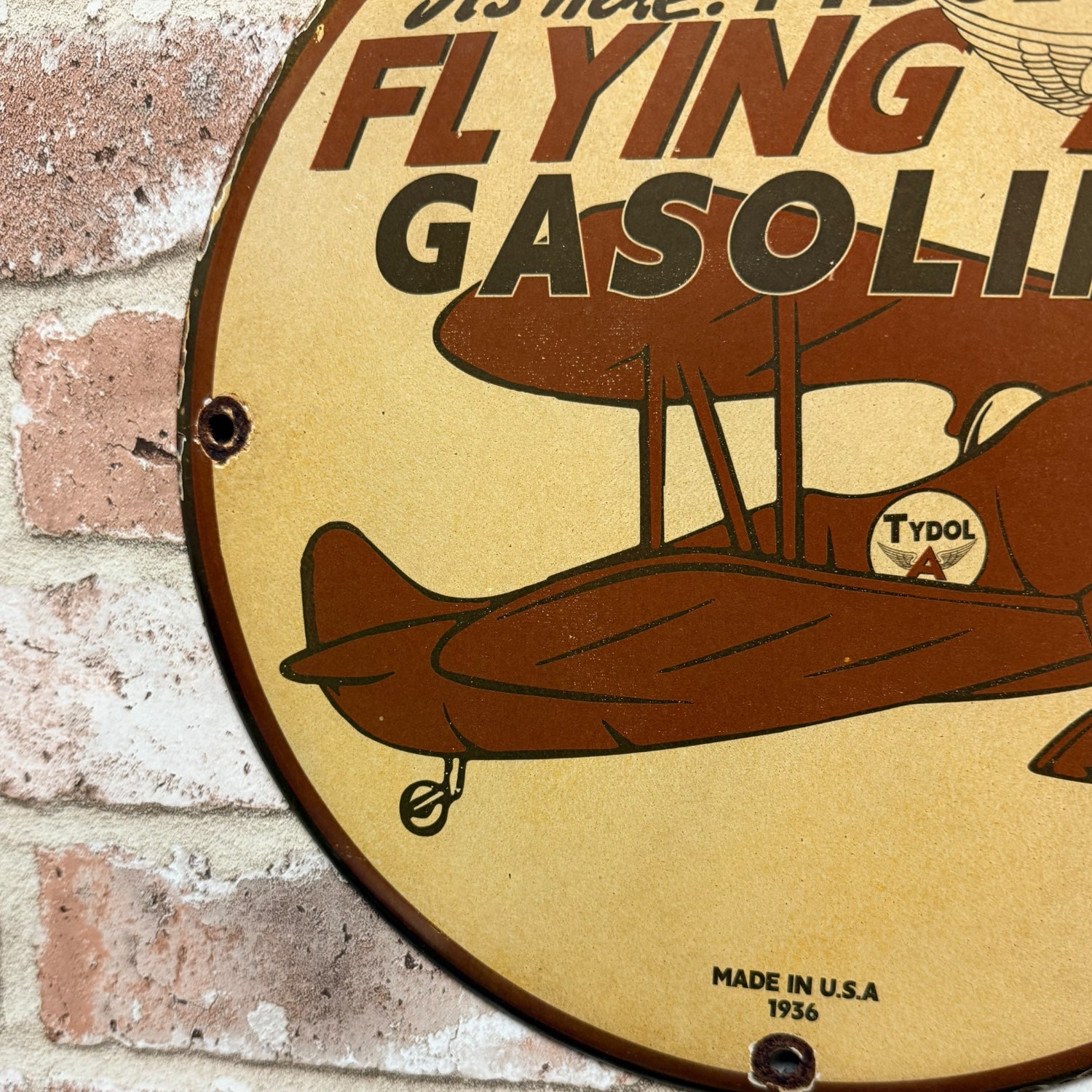 Tydol Flying A Gasoline 1936 Aviation Porcelain Enamel Sign (12in)
