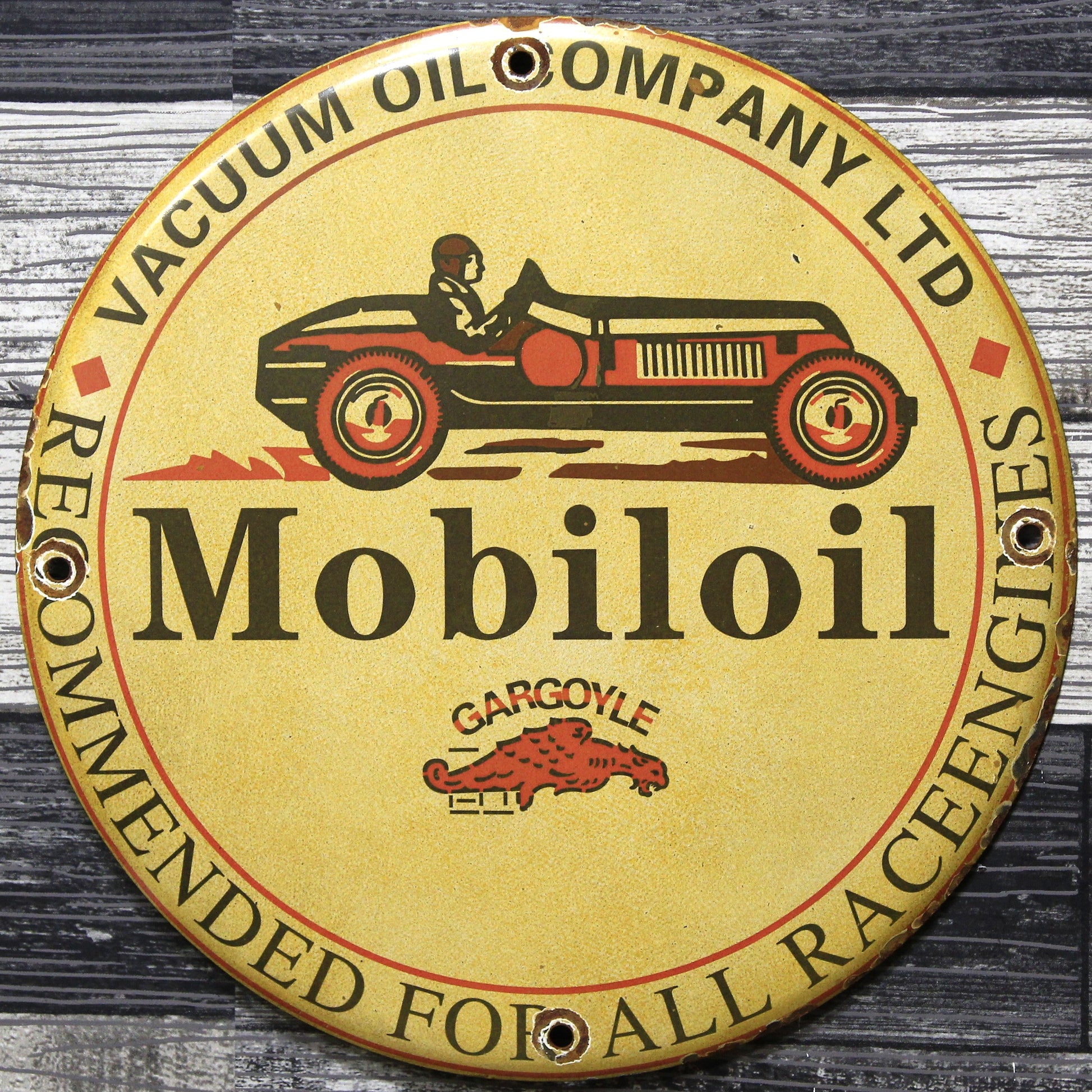 When racing was raw, loud, and dangerous, there was only one oil trusted by the early speed kings: Mobiloil by the Vacuum Oil Company. With its bold Gargoyle logo and reputation for reliability, Mobiloil was used in everything from track cars to endurance racers. This sign takes you back to a time when motors roared, tires smoked, and oil brands earned their keep under extreme pressure.